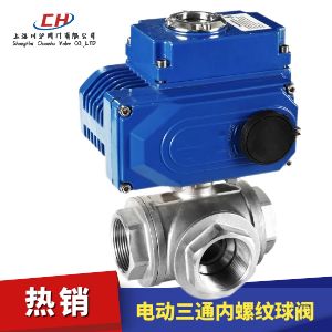 電動三通內螺紋球閥能實現對管道中介質流向的切換。也能使相互垂直的兩個通道連通或關閉。四閥座密封三通球閥具有造型美觀、結構緊湊合理。電動三通球閥不僅可實現介質流向的切換,也可使三個通道相互連通,現時也可關閉任一通道,使另外兩個通道連通,靈活控制管路中介質的合流或分流。